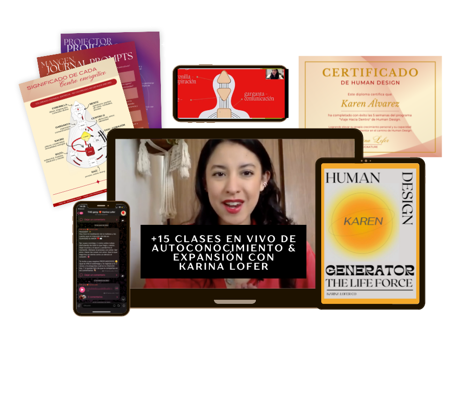 Incluye +20 clases + 15 workbooks, tu eBook Personalizado de Human Design (+80 pags) + una sesión 1:1 conmigo de 60 mins al finalizar el programa + Certificación de Human Design para dar lecturas 1:1 y más!